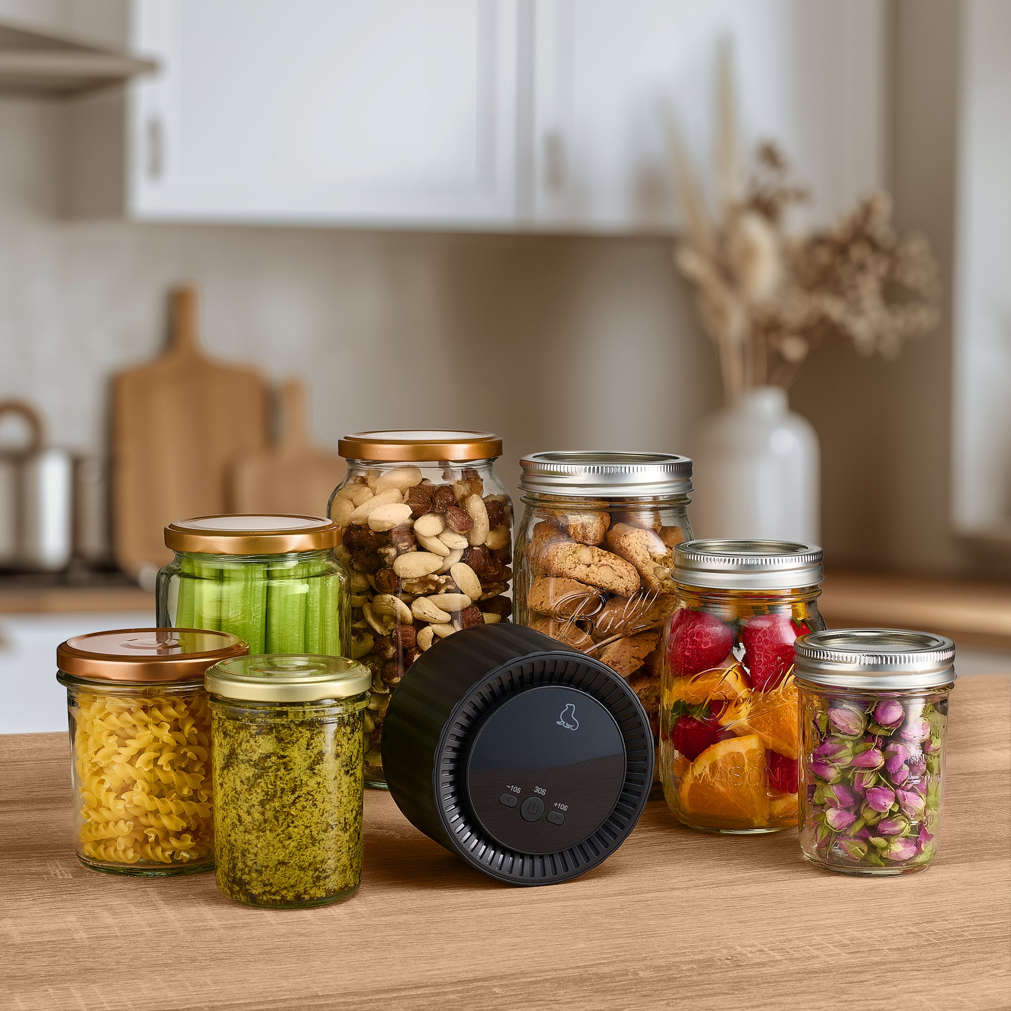 Genau deshalb eignen sie sich perfekt zur Vakuum-Lagerung – insbesondere mit unserem EcoSeal Pro. Damit kannst du die Gläser ganz einfach in Sekunden vakuumieren und deine Lebensmittel länger frisch halten – ganz ohne Einkochen oder Plastik.