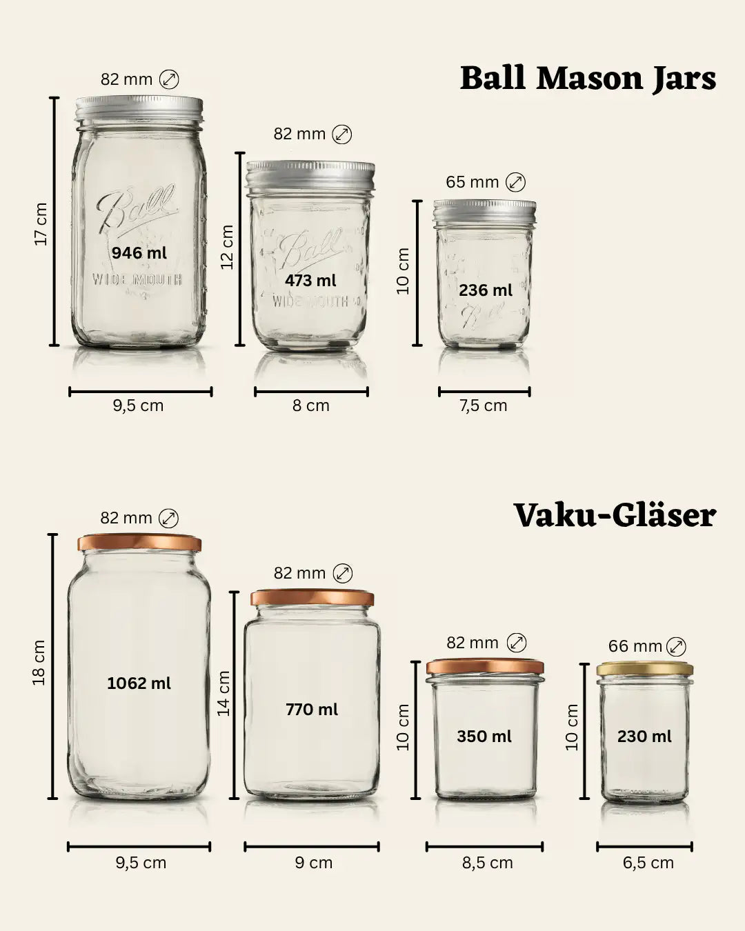 Die originalen amerikanischen Ball Mason Jars sind für ihren zweiteiligen Deckel weltberühmt – bestehend aus einem Schraubring und einer Dichtscheibe, die für einen besonders luftdichten Verschluss sorgt.