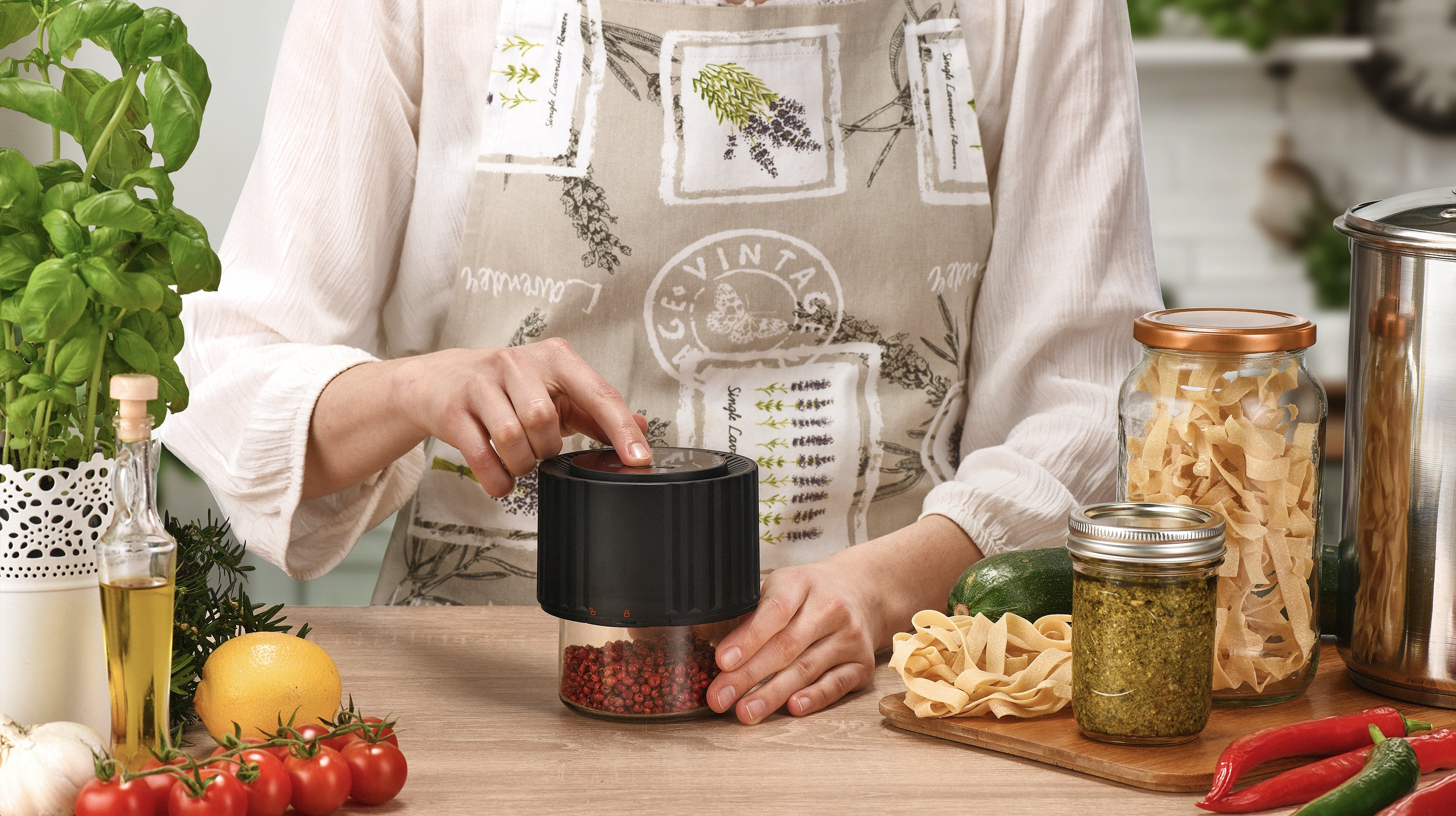 Forget complicated devices with bulky bags! The EcoSeal Pro seals your jar in less than 30 seconds – no complicated settings, no hassle. Just place the jar, press start, and you're done!